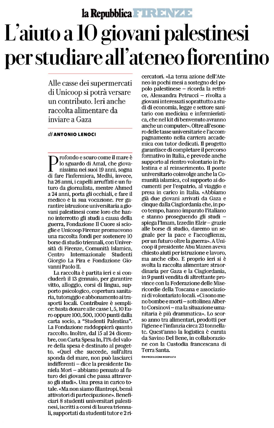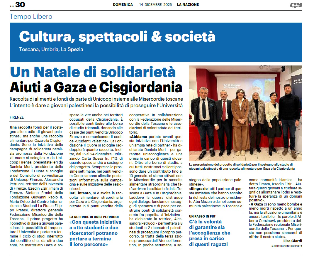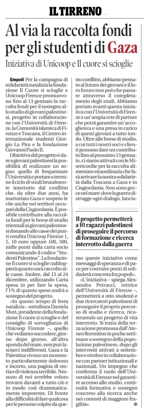 La campagna con Unicoop Firenze per le borse di studio a studenti palestinesi – Dicembre 2025